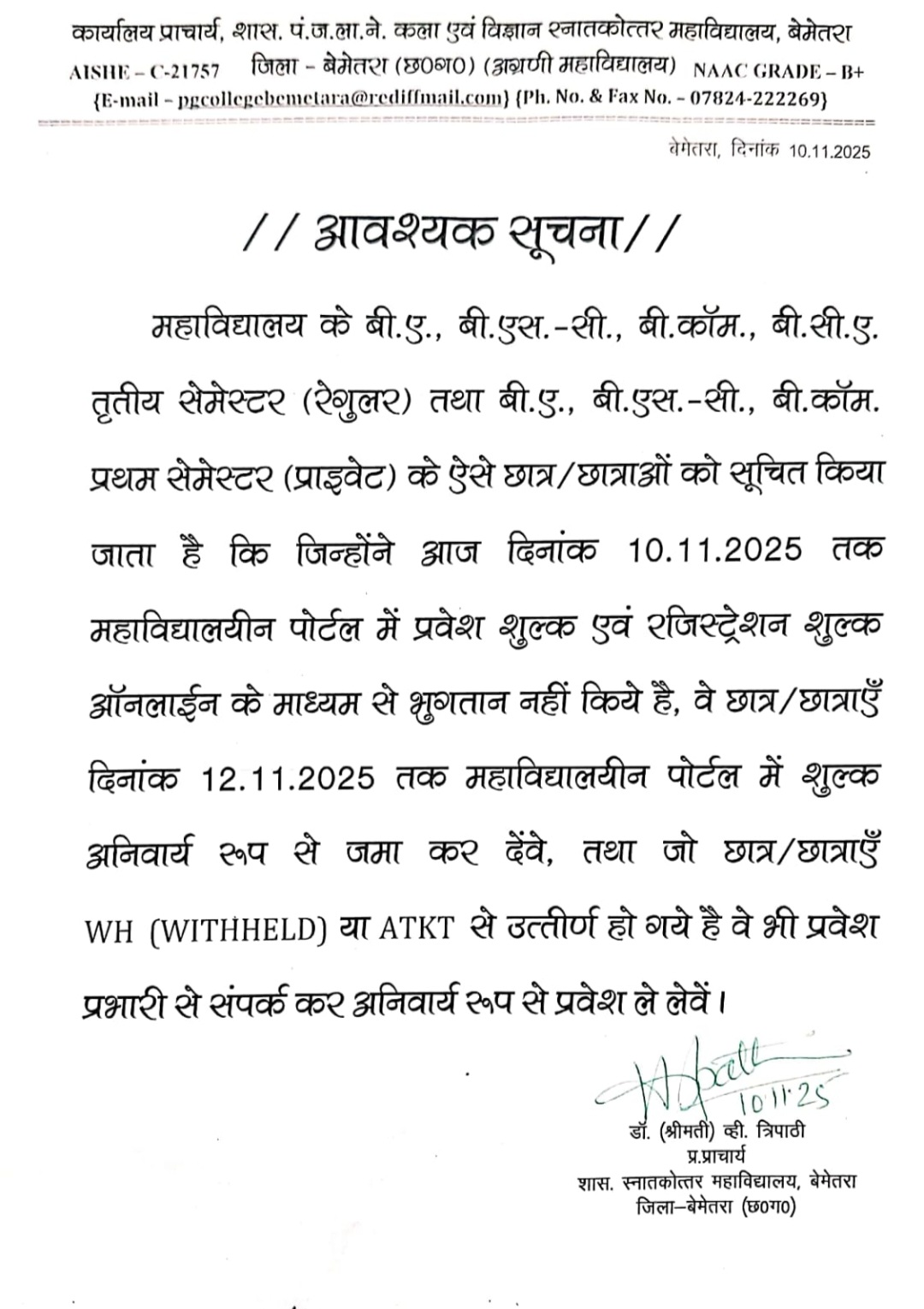 नांदघाट महाविद्यालय: अतिथि व्याख्याता विषय-प्राणीशास्त्र की अनंतिम प्रावीण्य सूची